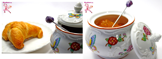 - Gently paint the egg onto the rolls. Follow with a light dab of mandarin orange jam.