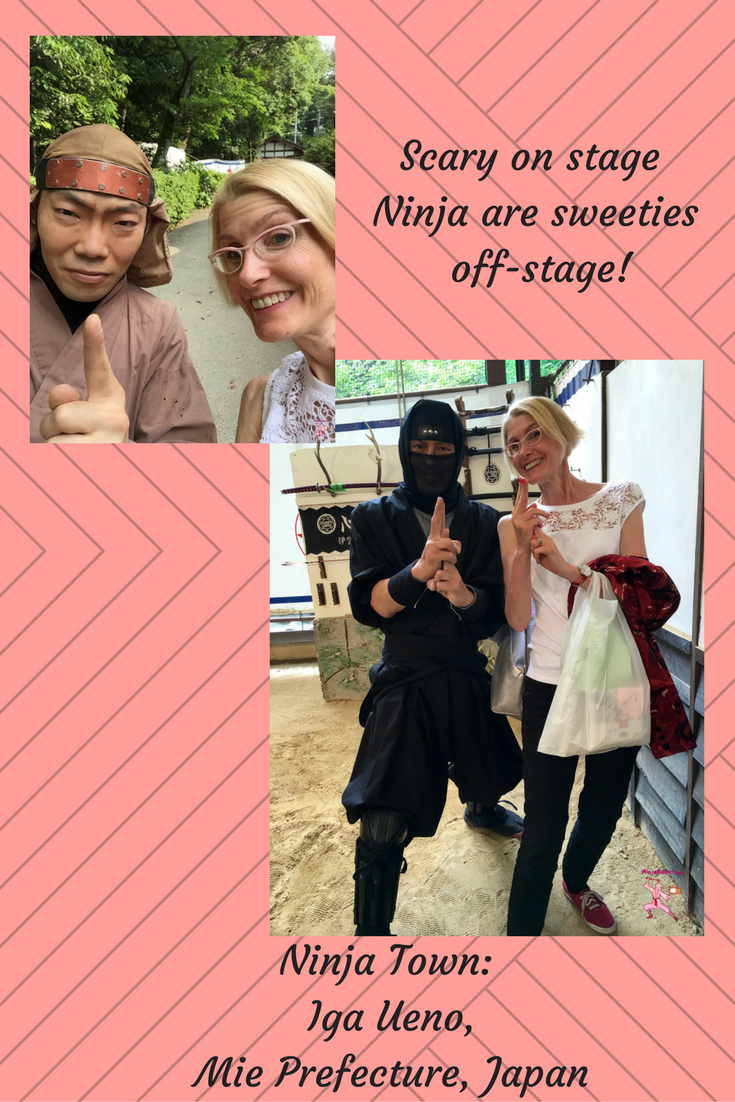 Arriving at the isolated Ninja Park in Iga Ueno, I wondered if real ninja were hiding. The mountainous town is a trek from Tokyo. Transportation time depends on which trains you catch. Our journey to the ninja town took under two hours. (Thanks to our Japan Rail Pass.) The return from fun with the ninjas, took about 3. However, I’d do it all over again. Yes, the ninja experience was amazing. But, also, the scenery outside the local train was breathtaking. A rushing river sang to the trees and rocks. The country (local) train ride felt soothing. I love Tokyo. It’s my hometown. But, a break from the always-buzzing energy of the cosmopolitan capital is refreshing.