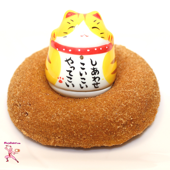 The kitty cat perches atop the Ninja Baker's gluten-free pumpkin cake donut.
