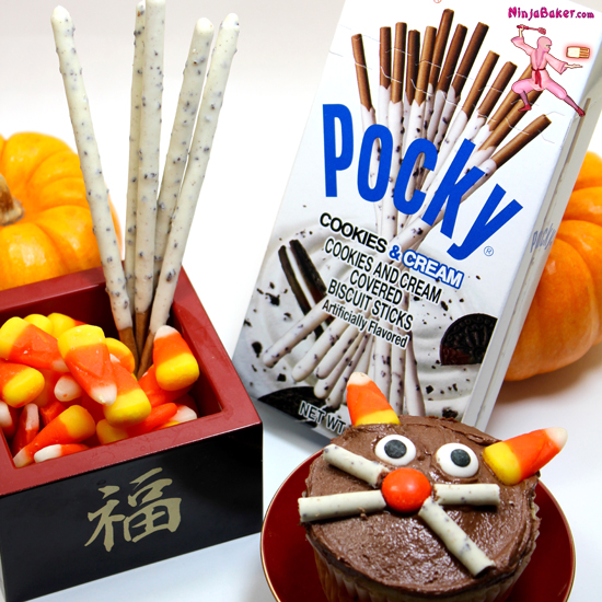 Homemade cupcakes are guaranteed crowd-pleasers also. So, I created Halloween kitty cat cupcakes whose whiskers are Cookies & Cream Pocky. If you celebrate Halloween, you’ll already have the other ingredients such as candy corns and chocolates on hand. Amazon Prime can deliver the candy eyes and Pocky to you. If you have a Japanese market near you, however, I guarantee you won’t have to go online. Pocky is a household name and staple in Japan.