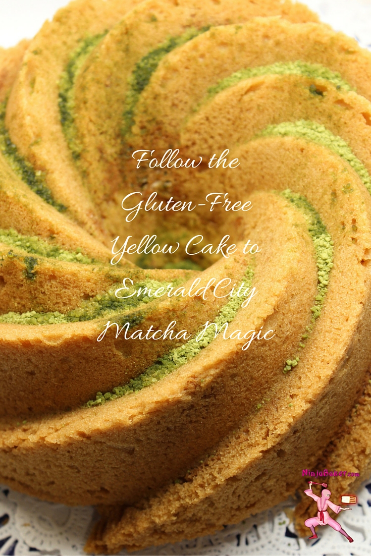 I whisk together premium Japanese green tea matcha powder with cane sugar. I sprinkle the Emerald City matcha magic atop the cooled cake. Finally, I slice into the moist, baked all the way through (whew!) cake…But, wait! Where’s my pretty nod to Dorothy’s red shoes swirl? The golden yellow way has swallowed the red swirls….Still, the cake looks good. Moist and rich…I take a taste. Yes, perfection. Especially with the green tea matcha sugar crunch.