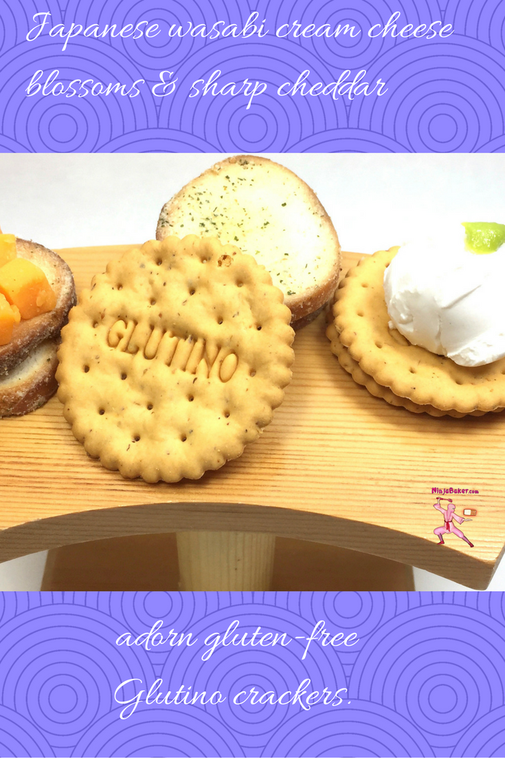 When the munchies hit, grab a box of Glutino Parmesan Garlic Bagel Chips or Glutino Vegetable Crackers. You may find the delightful gluten-free crisps with a bit of low-calorie cream cheese and a drop of Japanese wasabi will cut the cravings. The cream cheese is the perfect palette to allow the spicy wasabi to shine.