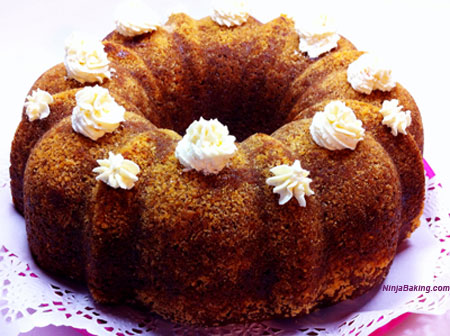 Preheat an oven to 325 degrees. Coat a bundt pan with baking spray and a generous shake of panko breadcrumbs.