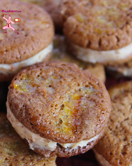 A conscious coupling of ginger orange marmalade and peanut butter combine to create a superb balance of yin and yang. The cookie is filled with a Neufchâtel cheese kissed with more ginger orange marmalade and Fuji apple crumbles.