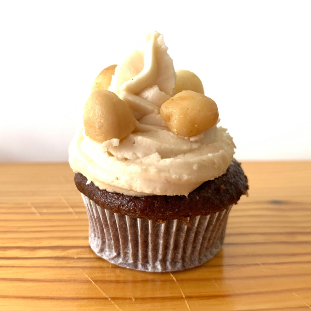 Before you leave Hawaii, besides chocolate covered macadamia nuts, be sure to pick up Hawaiian coffee butter. The Kona spread when mixed with powdered sugar transforms into luxurious buttercream. Atop chocolate mini cupcakes, you can wake up and smell the Hawaiian coffee…And know you are in Aloha paradise.
